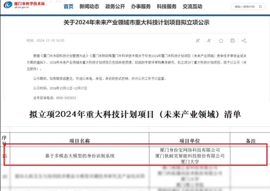 日前,福建省工业和信息化厅发布《2025年省级人工智能产业发展项目拟入选名单》。身份宝“基于多模态大模型的身份识别系统”以出色的核心技术和显著的应用成效,顺利入选“人工智能软件优质产品”,成为福建省推动人工智能与实体经济深度融合的标杆案例。
