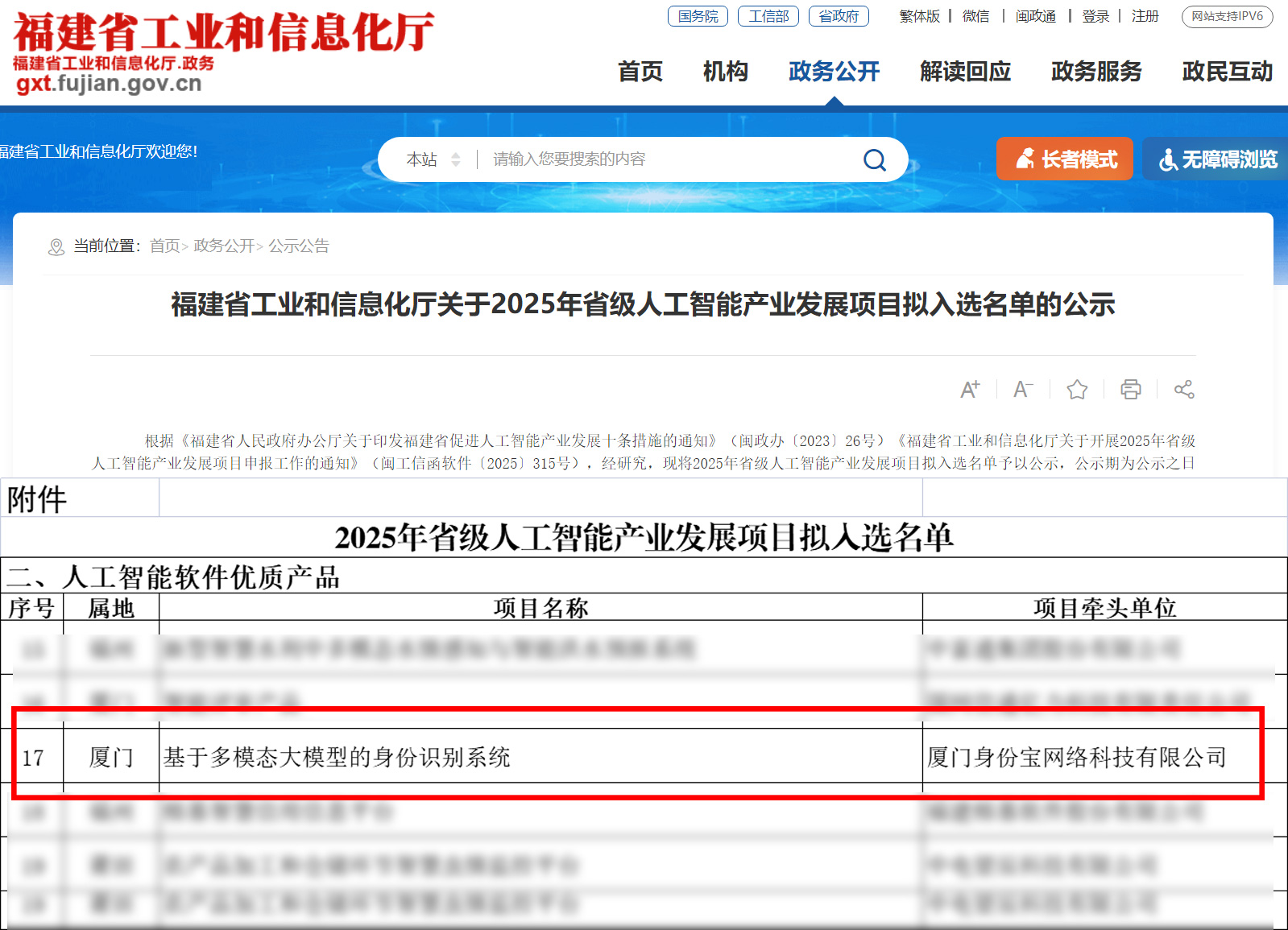 日前,福建省工业和信息化厅发布《2025年省级人工智能产业发展项目拟入选名单》。身份宝“基于多模态大模型的身份识别系统”以出色的核心技术和显著的应用成效,顺利入选“人工智能软件优质产品”,成为福建省推动人工智能与实体经济深度融合的标杆案例。